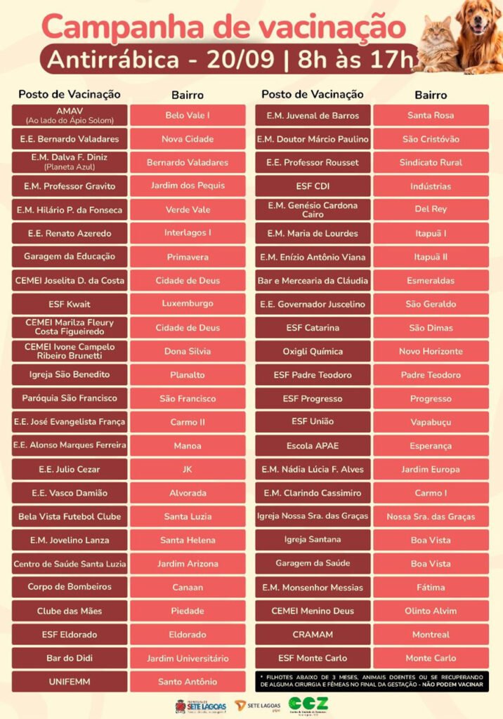 Com a capacitação em andamento e as primeiras etapas de vacinação já em curso, Sete Lagoas reforça seu compromisso com a prevenção da raiva e com a proteção da saúde coletiva, preparando-se para mais uma campanha de grande alcance em todo o município.