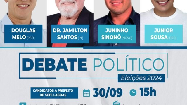 A Câmara Municipal de Sete Lagoas, através da TV Câmara, realizará um debate eleitoral com todos os candidatos ao cargo de prefeito municipal de Sete Lagoas no dia 30 de...