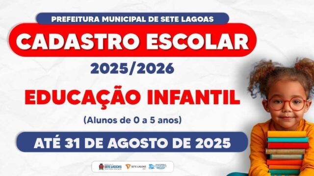A Prefeitura de Sete Lagoas, por meio da Secretaria Municipal de Educação, informa que está aberto o Cadastro Escolar da Educação Infantil para 2026. O período de...