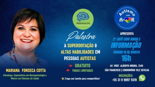 Instituto Autismo com Amor promove a segunda edição do Café com Amor & Informação, neste sábado 16 de Agosto. Com a presença da Psicóloga, Especialista em...