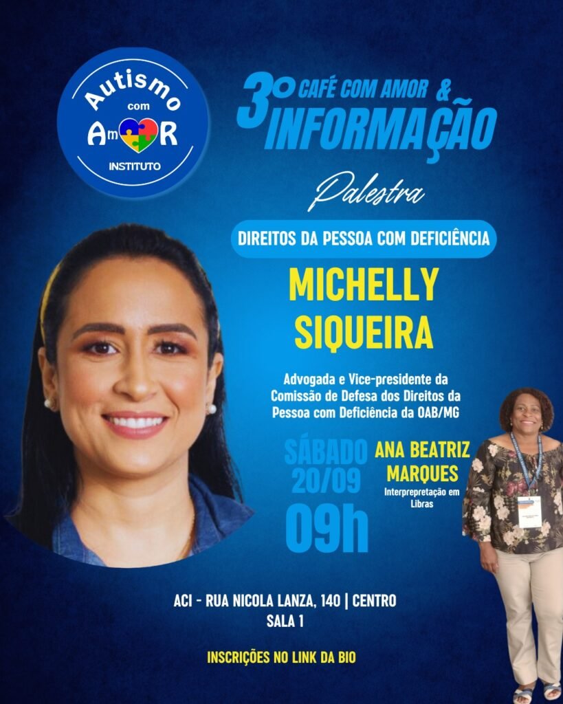 Esta edição especial terá como palestrante a advogada Michelly Siqueira, que é vice-presidente da Comissão de Defesa dos Direitos da Pessoa com Deficiência da OAB/MG. Ela abordará os direitos fundamentais e a legislação que ampara esse público, proporcionando um debate enriquecedor e informativo.
