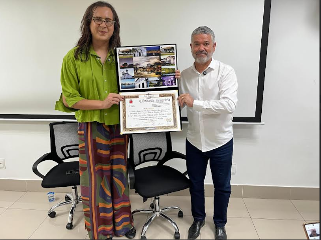 A Câmara Municipal de Sete Lagoas realizou, na tarde do dia 01 de dezembro, na Escola do Legislativo, uma cerimônia especial para a entrega do Título de Cidadania Honorária Sete-lagoana à Deputada Federal Duda Salabert (PDT). A honraria, proposta pelo vereador Caio Valace (PDT), reconhece a dedicação da parlamentar à defesa de políticas públicas e seu compromisso contínuo com o desenvolvimento da cidade.
