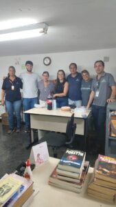 A equipe é composta por 22 pessoas, e as fotos representam apenas parte dos profissionais que contribuem diariamente para o funcionamento do espaço e atendimento aos leitores.