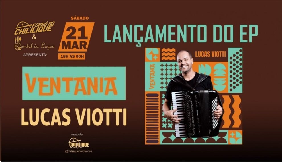 Um dos grandes destaques da edição será o lançamento do EP “Ventania”, do sanfoneiro Lucas Viotti, que vem conquistando cada vez mais espaço no cenário musical com seu talento e autenticidade.