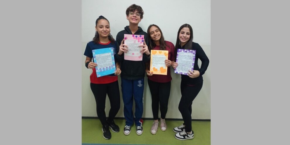 Antes de produzirem as cartas, os alunos assistem a vídeos de edições anteriores, leem textos de colegas e estudam a estrutura do gênero carta, incluindo vocativos adequados e o uso de pseudônimos para preservar a identidade dos autores. O processo mobiliza competências de escrita, organização, pesquisa, trabalho em equipe e responsabilidade, integrando os pilares socioemocionais e cognitivos da instituição.
