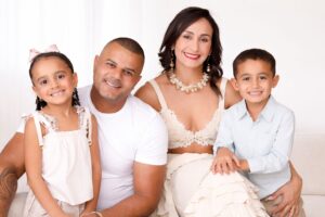 Luciana, o marido Daniel, os filhos Manuella e Pedro