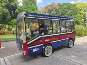 A réplica da linha 125 que circula na capital portenha tem oito assentos, faz um percurso de 600