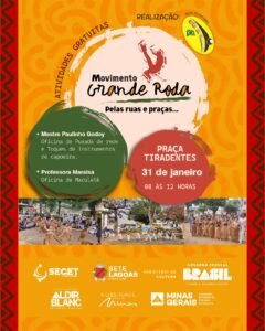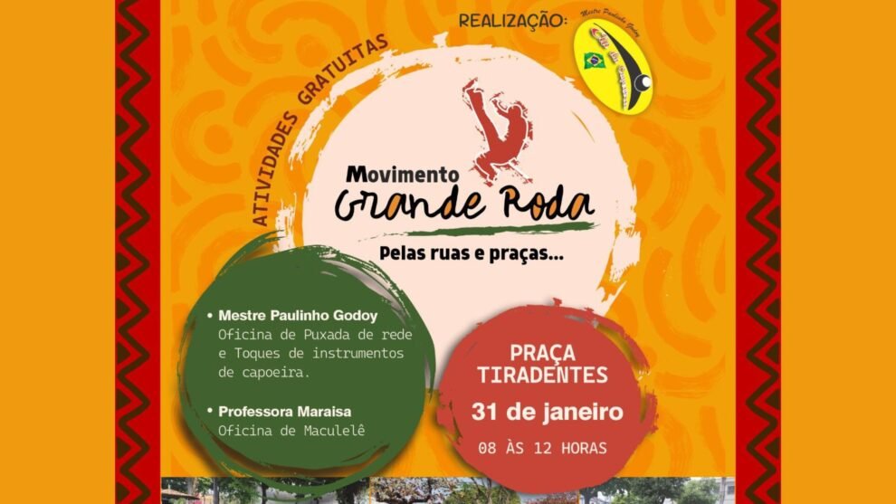 No dia 31 de janeiro, das 8h às 12h, a Praça Tiradentes será palco de um encontro dedicado à valorização da cultura afro-brasileira, da memória coletiva e do encontro entre gerações. O Movimento Grande Roda reunirá mestres, contramestres, professores, graduados, alunos e a comunidade em geral para uma manhã de vivência, aprendizado e troca de experiências.