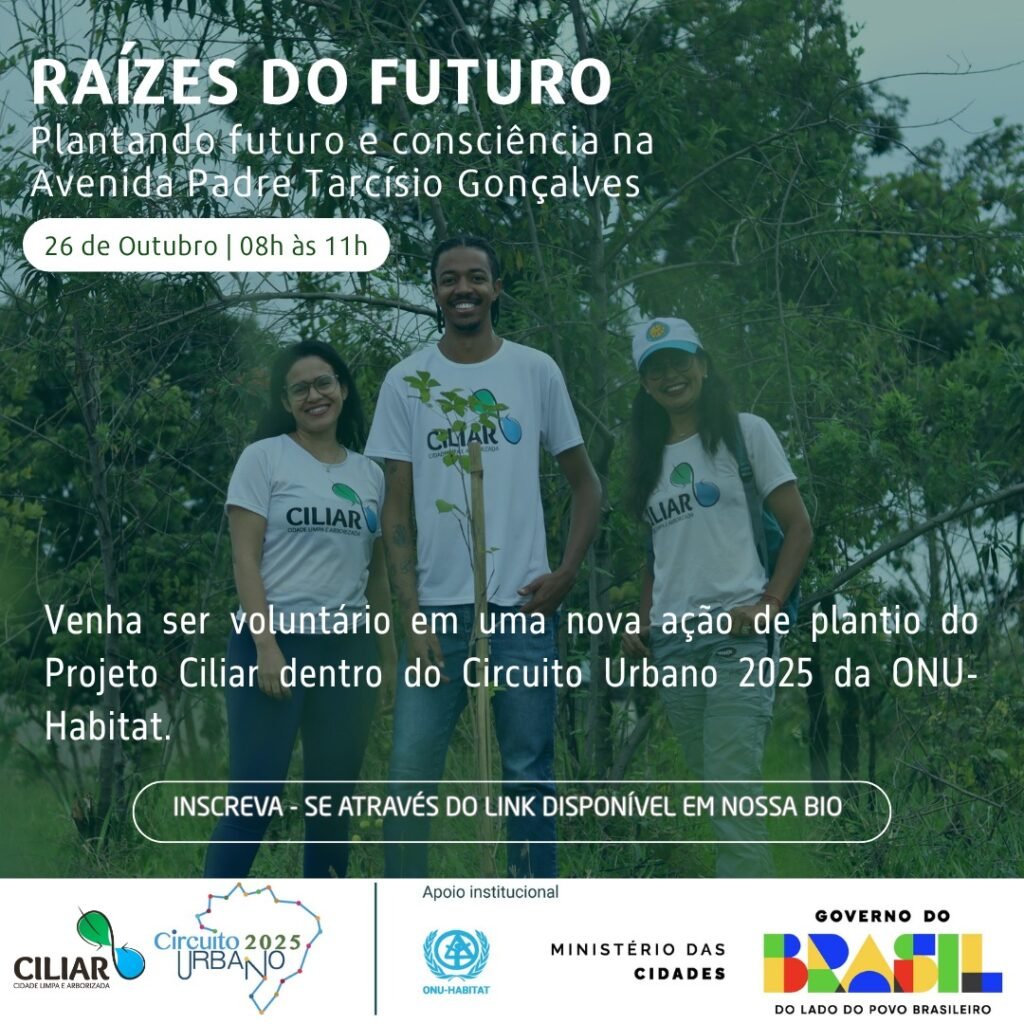 O Projeto Ciliar – Cidade Limpa e Arborizada, organização sem fins lucrativos reconhecida como de utilidade pública em Sete Lagoas (Lei nº 9.800/2024), convida a população para participar da Ação de Arborização Urbana, que acontecerá no dia 26 de outubro de 2025, na Avenida Padre Tarcísio Gonçalves, Sete Lagoas/MG. O objetivo da iniciativa é ampliar a cobertura vegetal urbana com espécies nativas do Cerrado, contribuindo para o conforto térmico, o fortalecimento da resiliência climática e a melhoria da qualidade de vida da população. Além do plantio, teremos momentos de educação socioambiental e de valorização da participação cidadã no cuidado com o espaço público.